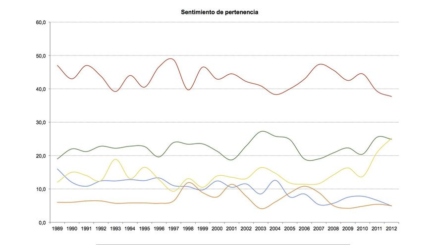 Ambas explicaciones tienen en común que se fijan especialmente en la demanda pero discrepan en cuanto a la naturaleza de la misma. La primera partiría de la hipótesis de la continuidad, es decir, que la sociedad catalana no ha experimentado demasiados cambios desde un punto de vista de las aspiraciones nacionales o al menos que estos no han sido demasiago grandes. Esta hipótesis sería congruente con las explicaciones que da buena parte de la literatura académica respecto a la estabilidad de las actitudes políticas y se sostendría empíricamente en los datos del Sondeigs d’Opinió que desde el año 1989 realiza el Institut de Ciències Polítiques i Socials, los cuales si bien muestran cambios en los sentimientos de pertenencia, ponen de manifiesto que estos se producen lentamente y que hay una relativa estabilidad de las identidades duales.