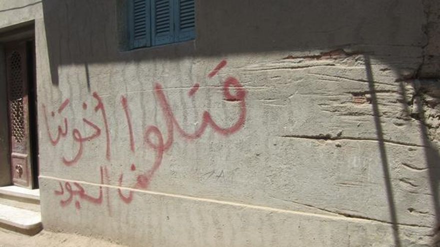 El 14 de agosto, después de que las fuerzas de seguridad egipcias dispersaran las concentraciones de partidarios del depuesto presidente Mohamed Morsi en El Cairo, un grupo de hombres entró en la Iglesia Ortodoxa de la Virgen, en Nazla, a unos 90 kilómetros de la capital. Horas antes, los altavoces de las mezquitas locales habían denunciado las muertes de “nuestros hermanos”. Cuando investigadores de Amnistía Internacional visitaron la zona pocos días después, encontraron eslóganes como “No hay más Dios que Alá” y “La religión de Dios es el Islam” pintados en las paredes. Un testimonio del ataque indicó que, el día de los hechos, los tres miembros del personal del Ministerio del Interior y el agente de paisano que normalmente guardaban el templo habían huido al prever el asalto.