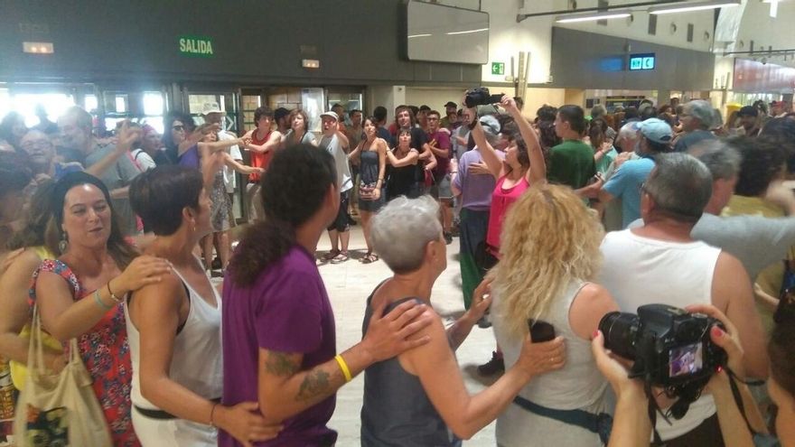 Según han informado desde la propia caravana en un comunicado, en el marco de esta acción de protesta se han dirigido “contra las empresas Iberia y Vueling, presentando hojas de reclamaciones y coreando consignas” como la que se puede escuchar en este vídeo colgado por @Stopdeportacion Así lo ha recogido también en un tweet la activista Helena Maleno: