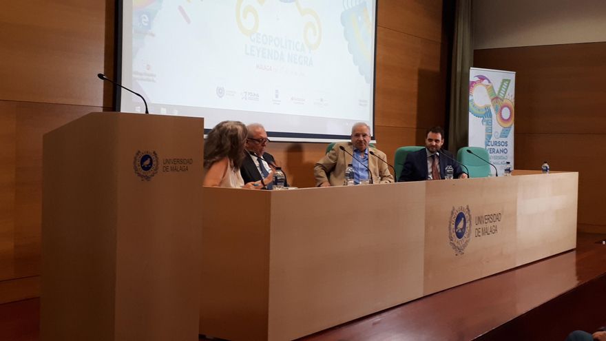 Los actos de Alfonso Guerra suelen ser prolíficos en titulares. En los últimos años el exvicepresidente está muy interesado en hablar del nacionalismo catalán. Sabe que lo que dice se oye. Además, le invitan porque no todos se prestan como él, siempre con la lengua a punto allá donde se le requiera. Este viernes estuvo en Málaga para pronunciar una charla. Se titulaba “El uso de la leyenda negra en los nacionalismos fragmentarios”, y formaba parte de un curso de verano de la Universidad de Málaga llamado Geopolítica y leyenda negra, coordinado por la profesora y escritora superventas Elvira Roca Barea, que ha hecho del tema casi una marca personal.