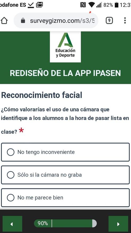 La Junta hacía llegar el 4 de marzo a los padres y madres de los alumnos de centros públicos una encuesta, activa durante 24 horas, para conocer su opinión acerca de iPasen, la versión para móviles y tabletas de PASEN, un servicio de la Consejería que permite la comunicación virtual entre los distintos miembros de la comunidad educativa (tutores/as legales, alumnado, cargos directivos y profesorado) y ofrece una serie de funcionalidades que la Junta pretende mejorar. La última pregunta nada tenía que ver con dicha plataforma sino con otro cuestión bien diferente. “Reconocimiento facial: ¿cómo valorarías el uso de una cámara que identifique a los alumnos a la hora de pasar lista en clase?”.