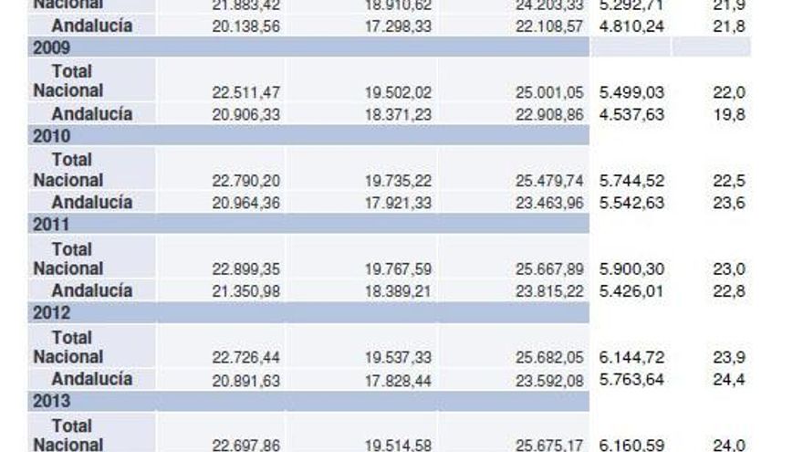 Según la secretaria de Igualdad y Juventud de UGT Andalucía, Cristina García, que hace unas semanas presentó un informe sobre esta cuestión, “las administraciones publicas no están apostando por la igualdad ni por el empleo femenino”. “A pesar del crecimiento económico, la brecha se está incrementando, eso no es lógico”, señala a la luz de la evolución de los datos en Andalucía, comparados en la siguiente tabla con la brecha salarial en España: