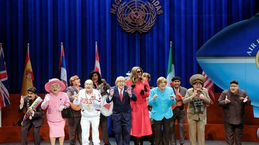 Los mandatarios de Venezuela, Nicolás Maduro; Alemania, Ángela Merkel; Rusia, Vladimir Putin; y el líder de Corea del Norte, Kim Jong-un, forman, junto con Donald y Melania Trump este “grupo de guasa” que se mofa de que el mundo “está muy tranquilo” y “ya no tiene miedo” desde que están ellos al frente.