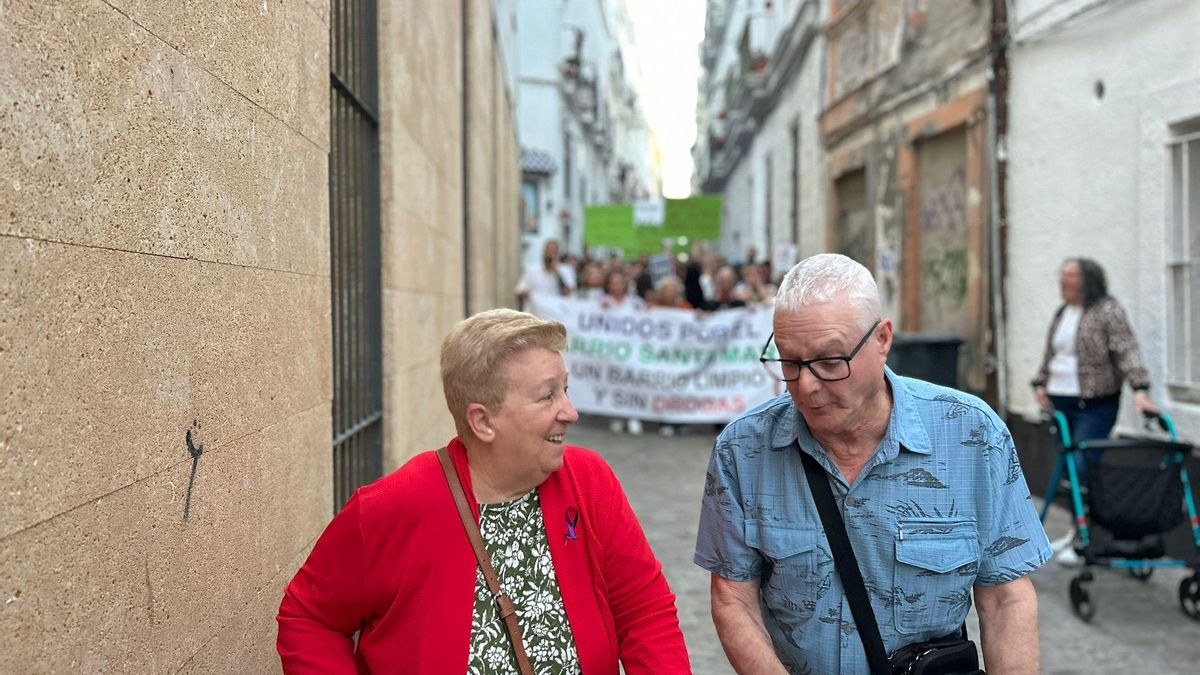 Mayte y Antonio llevan más de 20 años viviendo en la calle Botica, a escasos metros del número 12, un inmueble que esta misma semana ha sido tapiado por el Ayuntamiento de Cádiz tras ser señalado por los vecinos como un punto de venta de sustancias estupefacientes. Ambos superan los 70 años y, como tantas otras personas del barrio de Santa María, han empezado a cambiar rutinas. “Antes bajábamos tranquilos”, cuenta ella. “Ahora ya no”. Mayte ha dejado de llevar bolso por miedo a un tirón. Como ella, son muchos los mayores que evitan salir de noche y las familias que ya no dejan a sus hijos ir solos a comprar a las tiendas cercanas. El pasado viernes, Mayte y Antonio encabezaron la manifestación con la que el barrio quiso escenificar su rechazo a un mal que sienten de nuevo en sus calles: la droga.