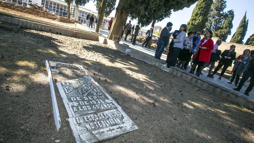 Con anterioridad, la comitiva ha estado en el cementerio de La Salud, donde acaba de finalizar la primera fase de la exhumación de las fosas comunes de la capital cordobesa, que albergarían los restos de unos 4.500 ejecutados por los golpistas de Franco. El equipo arqueológico ha recuperado los restos óseos de 20 personas, cuatro de ellas mujeres, a la espera de que las administraciones públicas aprueben la continuación de los trabajos.