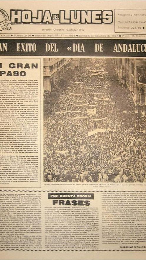 Es 4 de diciembre de 1977. Las portadas de los periódicos andaluces coinciden. La de El Correo de Andalucía es una insólita página en blanco con una frase escrita a mano por el periodista Juan Holgado. “Hoy, un día de bandera. Una primera página de la historia de Andalucía que debemos llenar todos con nuestra presencia”, se lee. ABC de Sevilla elige una foto de un joven con una bandera andaluza, en el Puente Nuevo de Ronda, con el titular “La frontera del futuro”. Ideal de Granada, que luce en su cabecera el aguilucho franquista, apuesta por “Andalucía, por su autonomía”, con un dibujo de ocho manos al aire. Sur de Málaga informa en su apertura: “Hoy, a las doce, manifestación por la autonomía andaluza”.