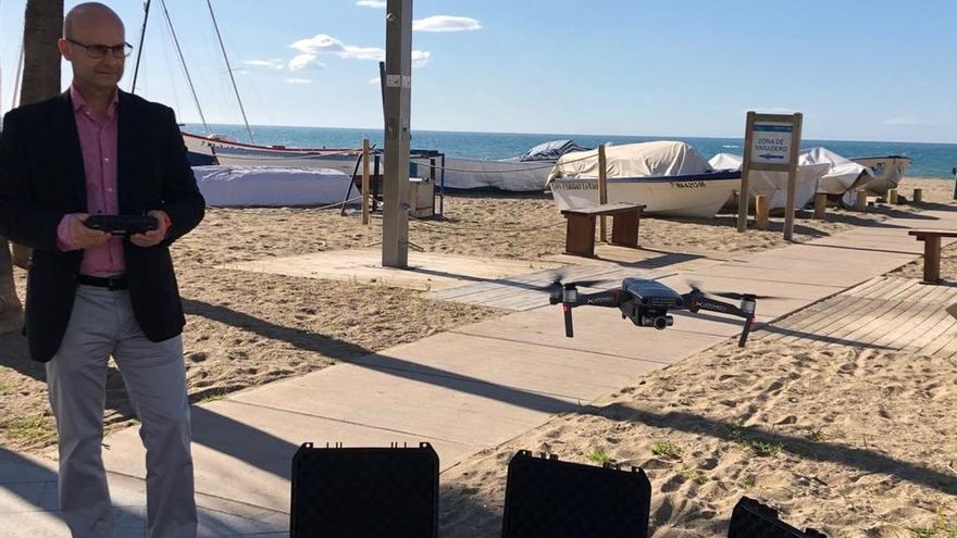 Mijas tiene 12 kilómetros de playa, que prevé controlar en tiempo real. Han previsto una separación muy superior al mínimo, de hasta 12 metros cuadrados por unidad familiar, con un aforo total de unas 16.000 unidades. Para comprobar la situación en cada momento, el municipio usará drones, cada uno realizará fotos periódicas del mismo punto. A partir de esa foto se calculará cuántas personas hay en la playa, y se volcarán los datos en una web de acceso público. Los drones también tienen altavoces, que servirán para una labor informativa. “Emitirá recordatorios. La gente verá el dron, y servirá para que sean respetuosos”, explica José Carlos Martín (Ciudadanos, que gobierna con el PSOE), concejal de playas.