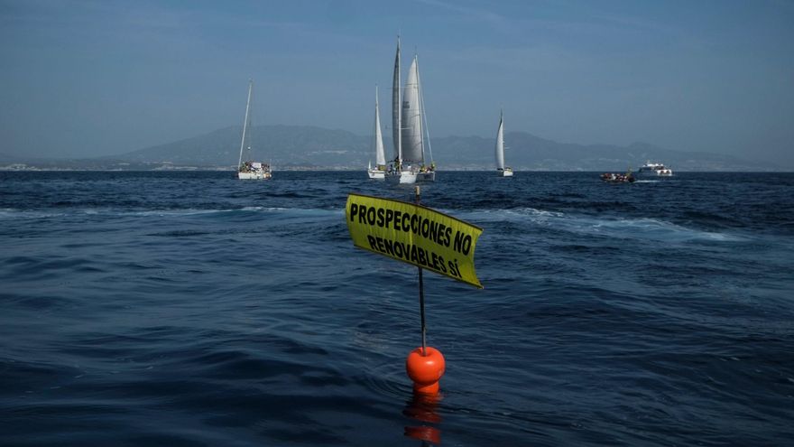 En las coordenadas UTM 353.619 (x) 4.031.825 (y) hay agua salada. A unos nueve kilómetros al sur de la Punta de Calaburras (Málaga) solo hay, de momento, mar. Pero ayer una flotilla se reunió en torno a este punto del mapa para colocar (y recoger después) una boya con un cartel en el que se leía “Prospecciones no, renovables sí”, porque quizá por debajo del agua salada, a un kilómetro de profundidad, haya gas natural. Repsol podría iniciar las prospecciones para determinar qué hidrocarburos y de qué calidad se almacena en una bolsa que localizó en 2005. Entre los barcos de la flotilla estuvo el Arctic Sunrise, de Greenpeace, que mañana partirá hacia las Islas Canarias para continuar la campaña contra las prospecciones.
