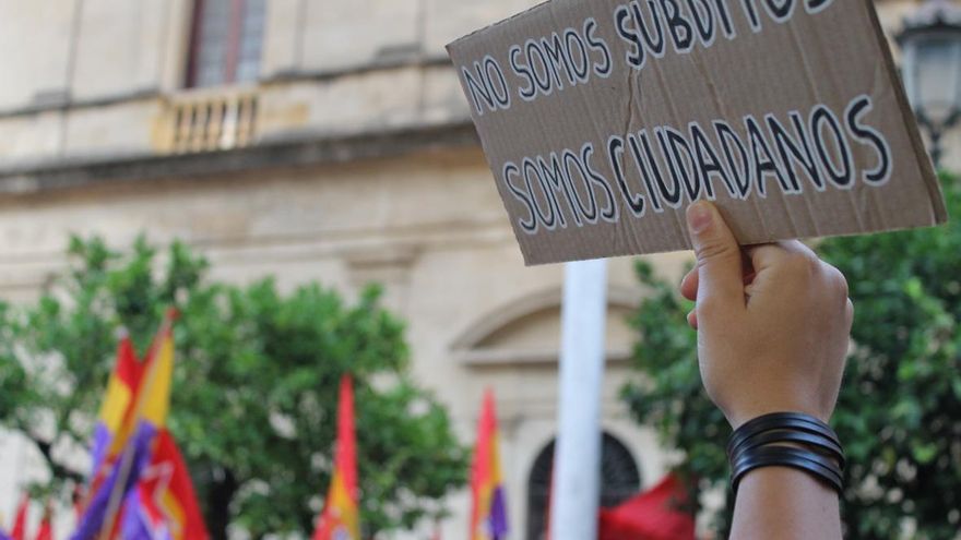 Participacion ciudadana más imaginación igual a pancartas ingeniosas. Es un cálculo básico de los movimientos sociales que reluce en los momentos más reivindicativos. Imaginación al poder o, dirían algunos, originalidad reivindicativa. Un ejemplo: las concentraciones populares convocadas tras el anuncio de abdicación del rey. Y como muestra, el botón de Sevilla.
