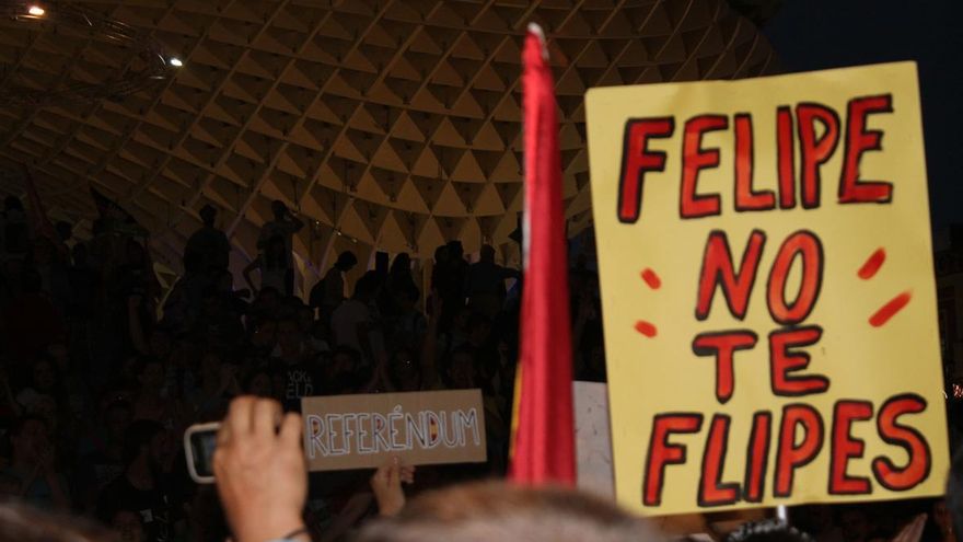Una numerosa manifestación recorrió las calles de Sevilla. Desde plaza Nueva, primer centro de la protesta, la petición de un proceso constituyente y un referéndum sobre monarquía o república pasó a las Setas de la Encarnación, donde hubo una asamblea final que convocó nuevas concentraciones.