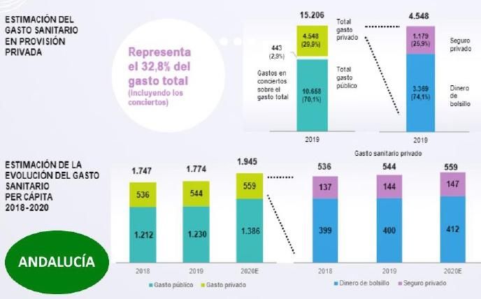 Además está ocurriendo otra paradoja digna de estudiar de la cual no hay constancia de su análisis y abordaje. Me refiero a ese dato tan evidente, aquí en Andalucía -y por tanto equiparable al resto del Estado- de que aproximadamente el 75% del gasto sanitario privado corresponde al dinero del bolsillo, es decir al coste que personalmente asumen quienes van a una clínica o a una atención médica privada y personal, no al dinero que se mueve por las pólizas de seguros. ¿Qué ocurre?