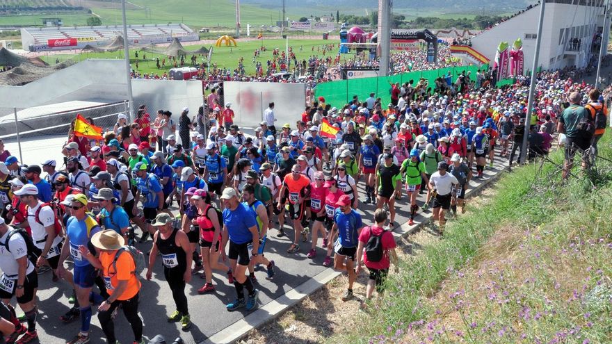 La salida: “¡Viva España, viva el Rey, viva la Legión!”A las 11.00 ya se superan los 20 grados. A esa hora salen los participantes en la carrera a pie. Los ciclistas y los duatletas llevan una hora pedaleando. “¡Viva España! ¡Viva el Rey! ¡Viva la Legión!”, se escucha en el estadio. Y empiezan. Los primeros corredores, deportistas de élite, pasan la cuesta a la carrera; los demás, miles, se lo toman con más calma porque no tienen que dejar a nadie atrás. Para la gran mayoría, la competición es con uno mismo. Tienen 24 horas para volver a Ronda. No hay tanta prisa. Llevan meses preparándose para esto.