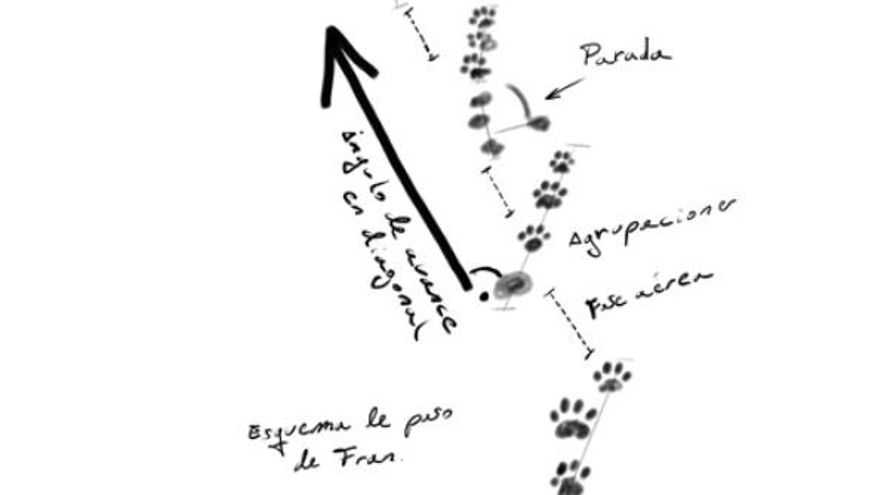 Galán lo explica así en el boletín especial que ha lanzado el centro desentrañando aquellos intensos días: “Dos rasgos caracterizan el rastro de Fran, ambos relacionados con su cojera de la mano izquierda. Por un lado, una distintiva marca digital en arco que no siempre se evidencia sobre el suelo. Por otro, un particular patrón de movimiento semejante al de un gran mustélido. En terrenos despejados ambas características facilitan su pisteo, pero a poco que el terreno se complica, esa ventaja se torna inconveniente al confundirse con las pisadas del tejón o de la nutria”.