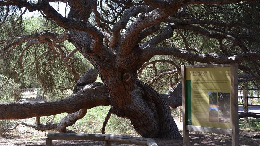 En el Parador Nacional también se apuran, tras casi una semana cerrado, en poner todo a punto para volver a abrir sus puertas. Una zona con césped sirve de contrapunto entre el árido paisaje. A sus puertas, el Área Recreativa de Mazagón y la cafetería, en cuya entrada se encuentra José Antonio González, con la mirada perdida como si aún estuviera viendo el fuego venir. “Esto es el milagro de Lourdes”, presume. Su negocio solo se ha visto afectado en sus alrededores. A unos metros, un pino centenario, monumento natural. “El día antes, el viernes, se estuvo limpiando toda esta zona de rastrojos. Si no hubiera sido así, también hubiera ardido”, explica durante una conversación con trabajadores de un taller colindante, perteneciente a la Consejería de Medio Ambiente.