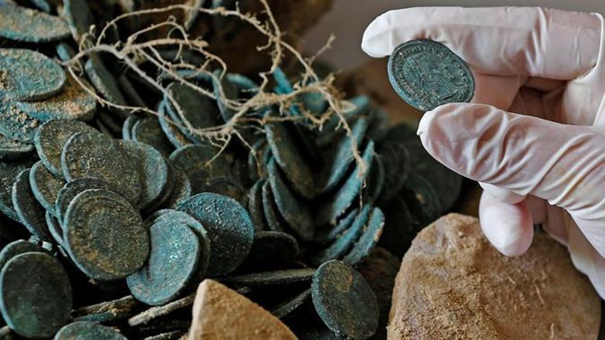 La propia CHG ha explicado en un comunicado que el hallazgo se produjo en la tarde de este miércoles, cuando la empresa pública Tragsa inició la excavación de un metro de profundidad para introducir la conducción eléctrica. Las piezas se encuentran en un gran estado de conservación, ya que prácticamente no habían tenido curso, y se encuentran acuñadas con las imágenes de tres emperadores romanos (Diocleciano, Constantino y Maximiano).