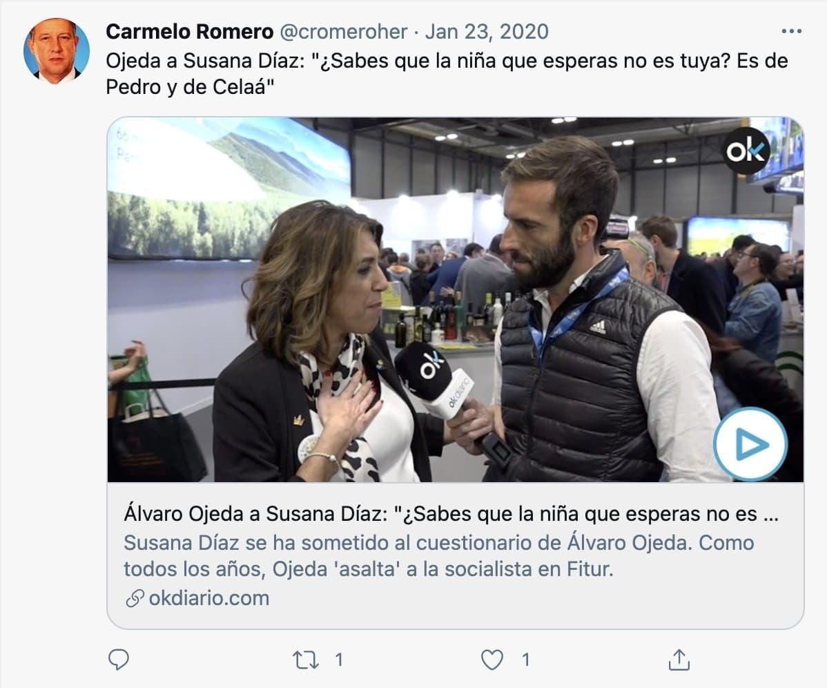 “Cuando mandaba Franco todos teníamos dinero en el banco” era el inicio de la “poesía política” que Romero difundió en Twitter en 2013: “Esto es una poesía que es una verdad como un templo”, decía acerca de un comentario con cada uno de los dirigentes de España. En esta red social también Romero se ha hecho eco de informaciones como esta: