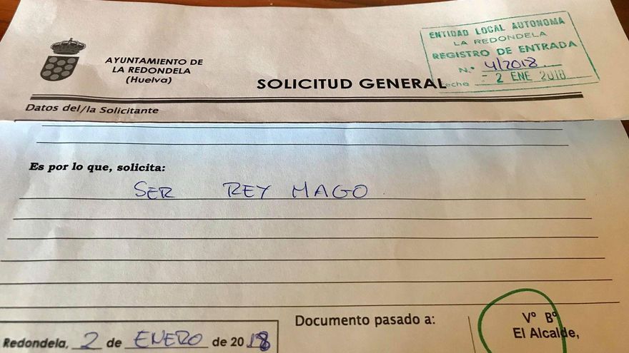 Ser Rey Mago en la cabalgata de la localidad onubense de La Redondela es más que una ilusión para sus más de 1.700 vecinos, porque es también un pueblo donde los vecinos optan en igualdad de condiciones a llevar el 5 de enero las coronas de los Magos de Oriente. Para ello, sólo tienen que hacer en el Ayuntamiento el mismo trámite que harían para cualquier otro trámite oficial: rellenar un escrito y dejarlo sellado en el registro general de entrada en el edificio consistorial.