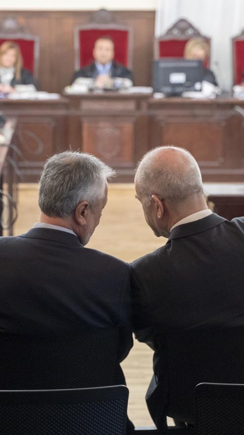 Nada menos que dos expresidentes andaluces, seis exconsejeros y otros 13 exaltos cargos de la Junta ante un tribunal de justicia (eran un total de 22 pero la Fiscalía retiró su acusación contra el ex secretario general de Hacienda Antonio Estepa) sentados en el banquillo. Anticorrupción, PP y Manos Limpias (salvo en el momento en que retiró los cargos por malversación contra los 15 acusados por este delito) se han mantenido más o menos firmes en sus argumentos de acusación: que hubo un sistema fraudulento para la concesión de ayudas a trabajadores y a empresas en crisis, que hubo un concierto al más alto nivel para evitar la fiscalización de las mismas y se pudieran otorgar de manera arbitraria, y que ello colaboraba en mantener una “paz social” que, como fin último, tenía la intención de mantener al PSOE al frente de la Junta de Andalucía. De hecho, para los populares, Chaves y Griñan fueron “la cúspide de la pirámide” de los ERE.