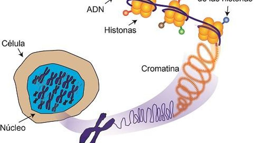El ADN, en su mayoría, se encuentra en un compartimento dentro de la célula denominado núcleo, para ello debe compactarse y así reducir la superficie que ocupa. Esta compactación es lograda al enrollarse a unas proteínas denominadas histonas formando la cromatina. La cromatina a su vez forma parte de una estructura de mayor compactación denominada cromosoma. Las histonas proporcionan a la cromatina una estructura muy dinámica que regula todos los procesos relacionados con el ADN. Si el ADN fuera un libro de las instrucciones necesarias para el desarrollo del organismo y el funcionamiento de la célula, las histonas serían como un marcapáginas que indicara los capítulos que hay que leer en cada momento del desarrollo del organismo y funcionamiento de la célula. Esto es posible, en parte, a que las histonas pueden verse sometidas a diversas modificaciones químicas. Un ejemplo de modificación química de las histonas es su acetilación y desacetilación. Las encargadas de este proceso son unas proteínas denominadas acetilasas y desacetilasas de histonas.