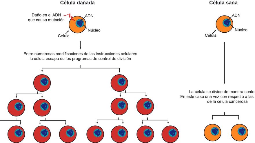 El cáncer es el nombre común del conjunto de enfermedades donde se produce una división descontrolada de las células del cuerpo. El primer paso para la aparición del cáncer viene dado por un aumento de la inestabilidad del genoma de la célula, se produce una alteración de la integridad del ADN. En este proceso dicha molécula se daña, bien por factores que provengan del exterior del organismo (tabaco, luz UV…) o por fallos propios del metabolismo de la célula, como por ejemplo fallos durante la replicación o duplicación del ADN (proceso necesario para que se herede la información de célula madre a hija sin que se pierda información).