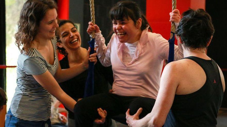 Malabares, acrobacias, equlibrios acrobáticos, trapecios, equilibrios en monociclo o en el cable. En l'Ateneu tocan la mayoría de las técnicas. “Hay muchas maneras y matices a la hora de trabajar”, explica López. “Los chavales venían al principio con nosotros, sin obligación ni nada, y aprendían a andar en zancos y todo eso”.