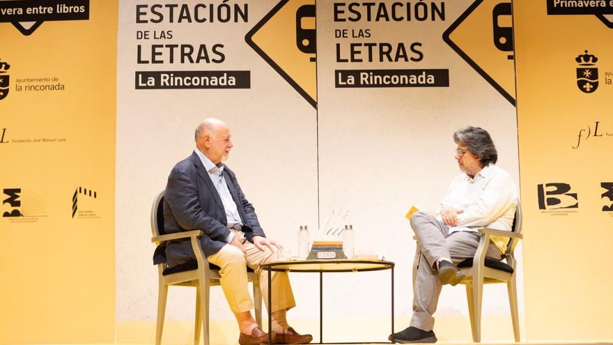 El Centro Cultural de La Villa de la localidad sevillana de La Rinconada acogió este sábado uno de esos actos que, como suele decirse, instruye y divierte. El escritor jiennense Juan Eslava Galán (Arjona, 1948) recibía el premio Factoría Creativa a su trayectoria, en un acto en el que conversó largamente con su colega peruano-sevillano, Fernando Iwasaki, quien demostró tal conocimiento de su vasta obra –compuesta por 95 títulos– que se permitió incluso plantear curiosas clasificaciones.