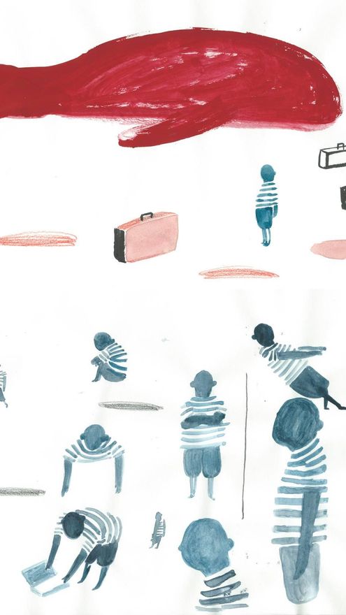 Cómo meter una ballena en una maleta “nace de una necesidad, la de aportar un granito de arena para luchar contra tanta injusticia e insolidaridad por parte de Europa. Quería contar qué pasa por la cabeza de alguien que es obligado a salir de su casa, de su tierra, hacia un destino desconocido, la mayoría de forma precipitada y en condiciones infrahumanas. Pero me interesaba mucho el momento concreto en que eres consciente de que no puedes permanecer en un sitio y piensas en qué llevarte contigo. Necesitaba hacerlo”. Así explica Guridi el nacimiento de este proyecto, con la editorial Tres Tigres Tristes, una edición limitada de 750 ejemplares en beneficio de Proactiva Open Arms.