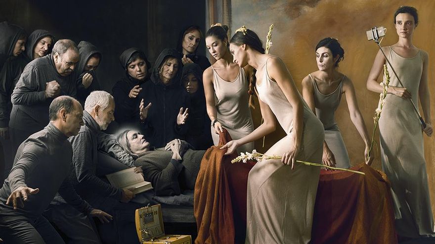 Porque, no despegarse de la realidad era un objetivo marcado desde el inicio del proyecto. Por ejemplo, en este encuentro entre dos mundos, el espectador puede ver que Santa Ana enseñando a leer a la Virgen es en esta versión del siglo XXI la fotografía Abuelas madres. Su protagonista, Hortensia de los Ángeles Gómez, con 64 años, representa a todas esas personas de la tercera edad que están permitiendo la conciliación laboral de sus hijos. También María Magdalena tiene nombre real: se llama Ana Bella, fundadora de la asociación que lleva su nombre dedicada a dar amparo a víctimas de violencia de género. Ana Bella huyó de su casa con nocturnidad y alevosía junto a sus cuatro hijos y a día de hoy, ya ha ayudado a más de 20.000 mujeres.
