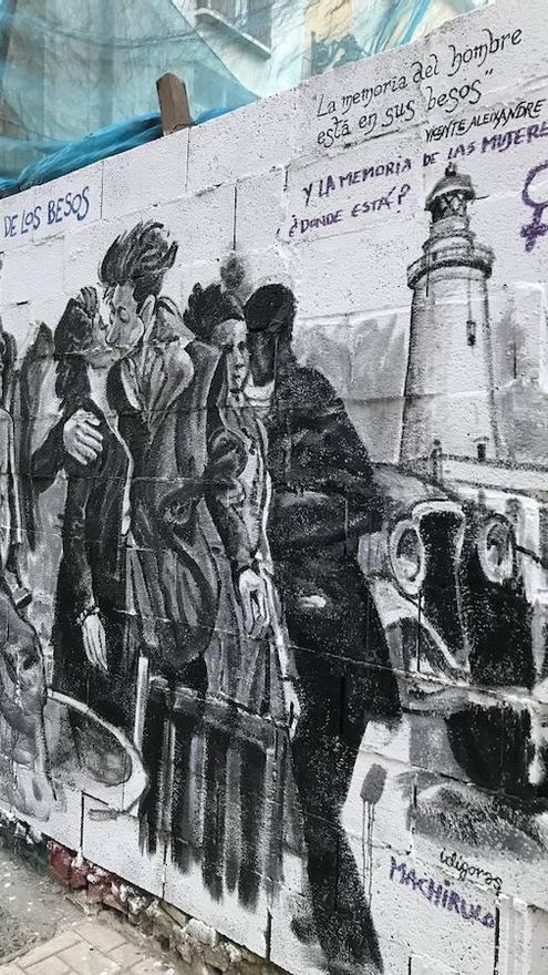 “La memoria de un hombre está en sus besos”, decía el verso de Vicente Aleixandre escrito junto a un mural, con el que el dibujante y viñetista malagueño Ángel Idígoras reproducía El beso, la célebre fotografía de Robert Doisneau. El mural y el verso compartían pared hasta ayer en una esquina del barrio malagueño de Lagunillas. Idígoras lo eliminó después de que durante el fin de semana alguien escribiera junto a la frase del poeta una reivindicación feminista: “Y la memoria de las mujeres ¿dónde está?”.