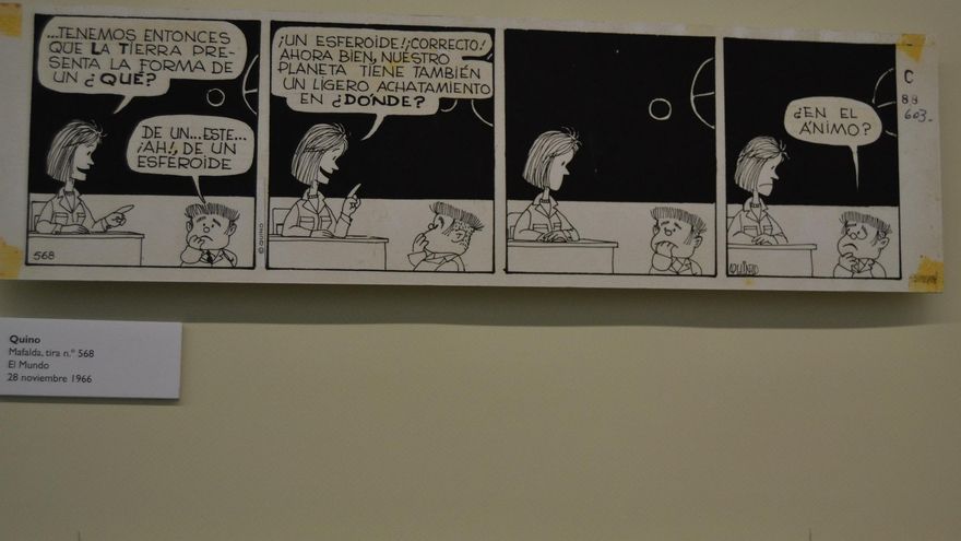 La muestra (hasta el 15 de febrero), coordinada con la Alianza Francesa y con el gran festival europeo de la historieta, el de Angulema, es un recorrido por los espacios de la casa de Mafalda con parada en la escuela. El colegio es en el universo de Quino escenario de preguntas, más que contenedor de respuestas.
