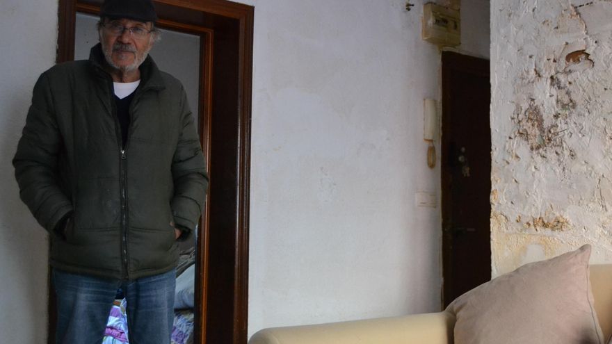 Su casa es bajo de un humilde bloque de viviendas en Calle Carceleras, una calle peatonal donde se alinean varios bloques similares. En el salón hay un sofá junto a una pared desconchada, una librería atiborrada de objetos y fotos, y la tele. Antonio López dice: “Yo entiendo que si no pagas, te vas a la calle. Pero si no puedo pagar… ¿Qué hago?”. Explica entonces que de su pensión, que supera por poco los 600 euros, debe dedicar algo más de 300 euros al pago de una pensión compensatoria a su exmujer. Y con los apenas 300 euros que le quedan no le llega. “O pago el alquiler o como”.