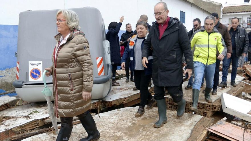 El alcalde de la ciudad, Francisco de la Torre, acompañado de miembros del equipo de gobierno del consejero de la Presidencia, Administración Pública e Interior, Elías Bendodo, se encuentra en la zona más afectada, en las calles José Calderón y Cristobalina Fernández, para comprobar los daños.