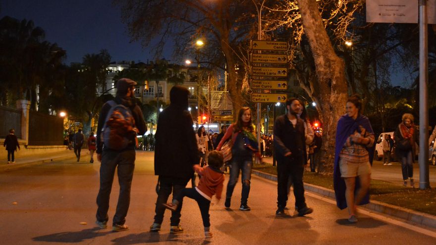 Pasadas las nueve de la noche, la riada deja atrás la Plaza de la Marina, donde estaba previsto que terminase la marcha, y sube por calle Larios. Hay que seguir reivindicando. Muchas no se explicaban el inusual recorrido diseñado en esta ocasión por el ayuntamiento. En lugar de recorrer el centro histórico, la Policía ha desviado la manifestación por el Paseo de los Curas hacia la Malagueta. Así ha evitado el inconveniente de las obras de la Alameda Principal. También ha evitado el paso por las calles más transitadas, que de un tiempo a esta parte están tomadas por las mesas y sillas de decenas de bares y terrazas.