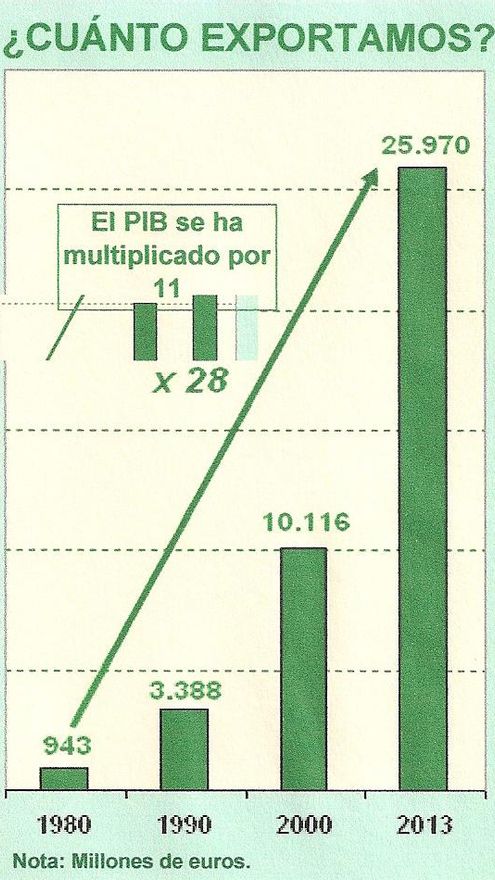 En cualquier caso, las cifras de los últimos años muestran una evidente aceleración en la internacionalización de la economía regional. Los 25.970 millones de euros exportados en 2013 equivalen al 18,5% del PIB. Es decir, una quinta parte de todos los bienes y servicios producidos en Andalucía en año pasado, se exportaron. “Es el máximo porcentaje que se ha producido desde que tenemos datos de comercio exterior regionalizado para Andalucía”, destaca Maldonado.