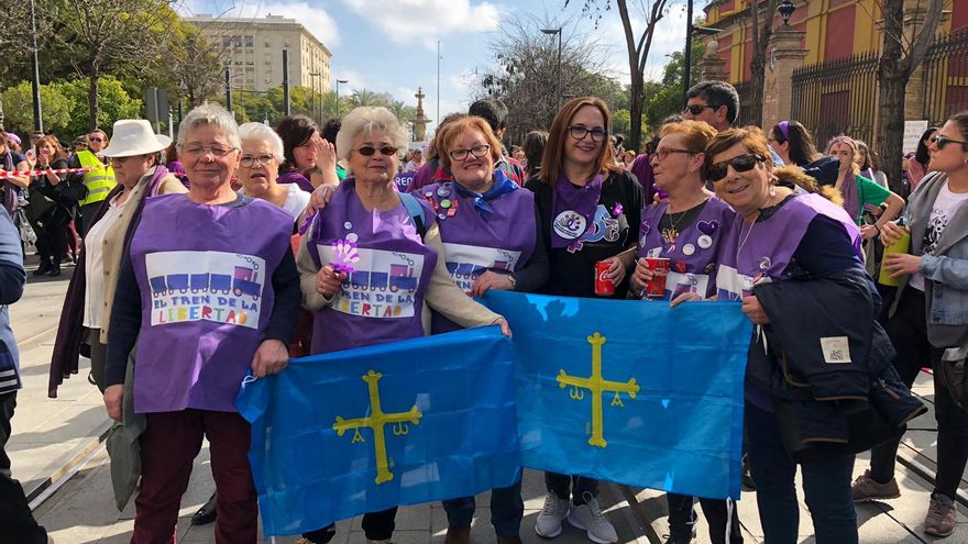 A lo largo del recorrido, hombres y mujeres procedentes de todas las provincias andaluzas han coreado frases como 'De norte a sur de este a oeste mujeres en lucha cueste lo que cueste', 'El machismo mata, el fascismo nos remata' o 'Somos las nietas de aquellas brujas que no pudisteis quemar'. Incluso ha habido presencia de mujeres de otros puntos de España, como Asturias, precisamente el lugar desde el que se impulsó el “Tren de la Libertad” contra las políticas antiabortistas del entonces ministro Gallardón.