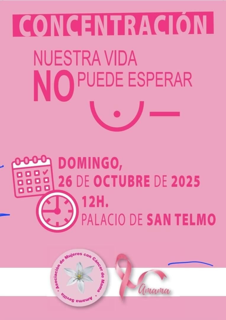 La Asociación de Mujeres con Cáncer de Mama (Amama), junto a otras asociaciones de igual tipo, han anunciado este jueves que han acordado celebrar una 'concentración rosa' en el Palacio de San Telmo, sede de la Presidencia de la Junta, el próximo domingo día 26 de Octubre a las 12 horas a raíz “ante la respuesta del presidente de la Junta de Andalucia y su Gobierno con respecto al proceso del cribado del cáncer de mama”