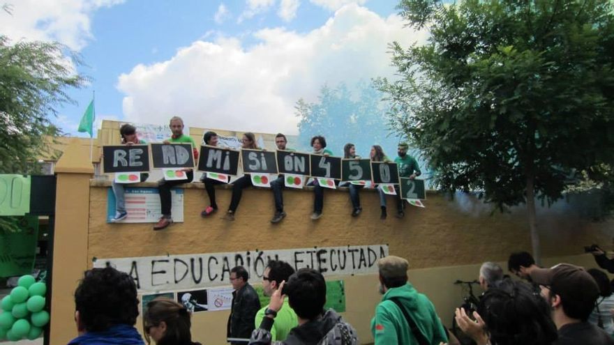 “Vamos a ir haciendo turnos para que en todo momento haya un buen número de personas en el centro. En ningún momento nuestra intención es paralizar la actividad docente del mismo”, asegura Menudo. Los portavoces de la plataforma han denunciado también el progresivo abandono de muchos de los centros educativos de la comunidad por parte de las instituciones. De ahí, que hayan elegido este instituto en el que ya sólo imparten clase cuatro profesores a un total de 60 alumnos de segundo ciclo de secundaria y bachillerato. Para Iván Menudo, “esto es un dinero público que se invirtió y se está dejando morir poco a poco”. “Hay humedades, los techos se están cayendo, el patio está dejado de la mano de dios”, cuenta.