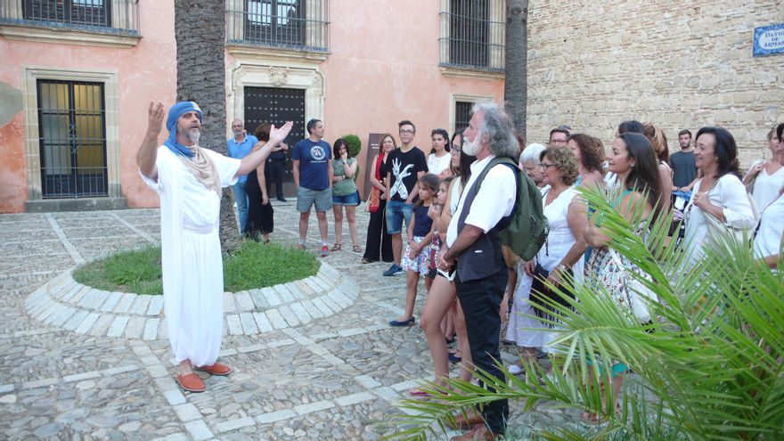 El paseo por los jardines es otro momento mágico de la visita. El sonido de la fuente, el olor de las flores... “Es una representación del paraíso en la tierra”, remarca el poeta. Aisha, interpretada por María Fernández, una de las almohadas del gobernador, realiza un baile ante los presentes para darle mayor realismo a la situación.