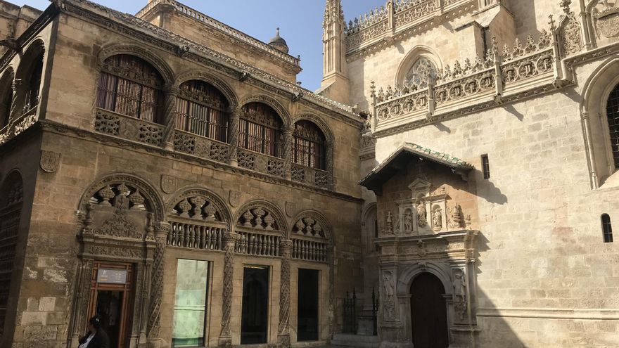 La fachada principal con las imágenes de los santos Juanes (Bautista y Evangelista) quedó dentro de la Catedral y a los pies de la nave, otra portada comunica con la Iglesia del Sagrado. Razones más que suficientes para que la visita a la Capilla Real se haga sin reloj ni móvil.