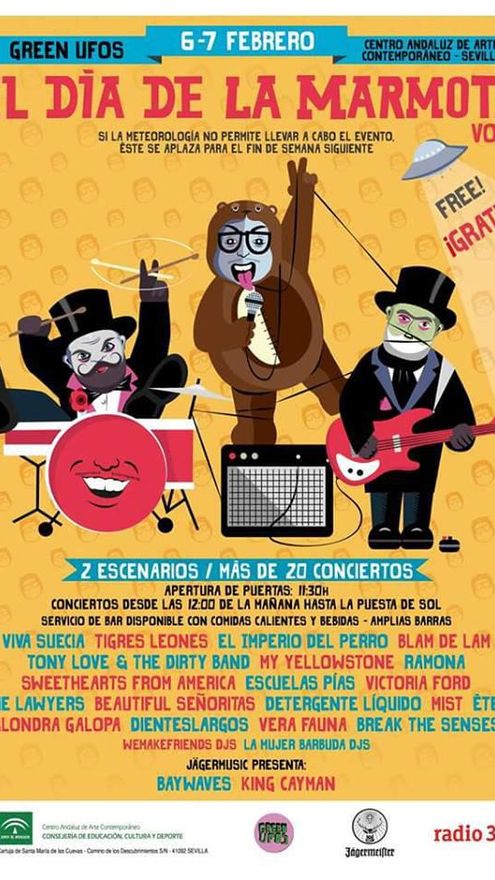 Esta tradición centenaria al otro lado del Atlántico ha servido de inspiración a los organizadores de un festival de músicainspiración a los organizadores de un festival de música que, desde hace tres años, consigue despertar del letargo a los andaluces con dos intensas jornadas de pop, indie y rock nacional. Durante el fin de semana del 6 y 7 de febrero más de una veintena de bandas emergentes, la mayoría andaluzas, sacarán la cabeza de su madriguera para subirse a los dos escenarios instalados en el Centro Andaluz de Arte Contemporáneo de Sevilla. Un festival totalmente gratuito que marca el inicio anual del circuito festivalero andaluz.