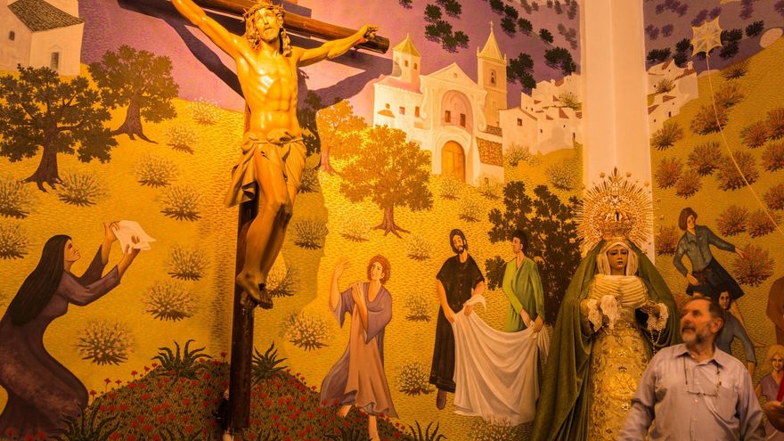 Volvió a mediados de los noventa con el reconocimiento de los premios y las ventas, para cumplir aquella promesa. “Aquí hay doce años de mi vida”, comenta el autor, que la pintó entre 1995 y 2007. La Ermita de Nuestra Señora de los Remedios es especial porque refleja en 1.150 metros cuadrados el paisaje y las costumbres de la Axarquía, y recoge a diario un goteo constante de turistas.