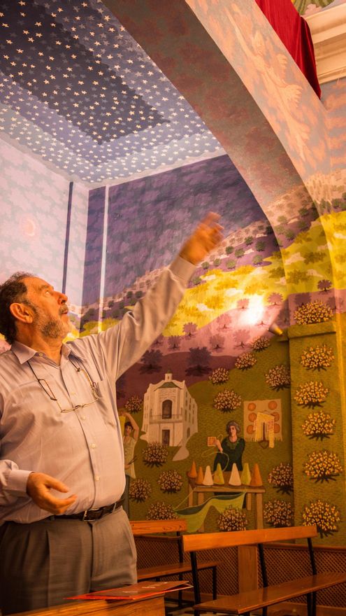 “Lo más bonito es que el pueblo participó en esto. Cuando estaba pintando al canastero, una señora me dijo: ”¡Qué bien está pintando a mi marido!“. Yo le dije que era imposible, porque no lo conocía. Pero ese hombre vino tres días después, se puso de perfil, y era igual. ¡Y era canastero!”. Guerra también tuvo la ayuda de un espontáneo para colocar el Lucero del Alba en su lugar exacto. Sólo para pintar estrellas dedicó dos meses.