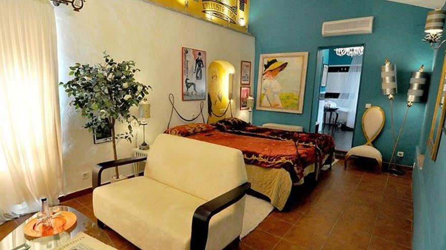 Tánger, Estrecho, Poeta (generación del 29), La República, Art Déco o Utopía son algunas de ellas. París 1937 hace referencia a la Expo de París de ese año. En la parte de arriba están las musicales (Jazz, Tango y Cabaret), decoradas con instrumentos y fotografías. No falta la habitación Casas Viejas, una réplica a las casas tradicionales de Benalup, ni Ilustración, cuyo alma son las revistas de la época. Todo pintado a mano, lo que hace que cada habitación sea una obra de arte. Tal cual.