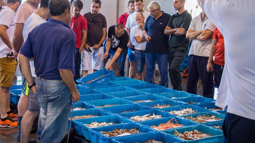 A las cinco comienzan las subastas de arrastre y artes menores: se parte de un precio que baja a velocidad de vértigo en las pantallas, hasta que alguien pulsa el botón de su mando a distancia, compra y detiene la puja.