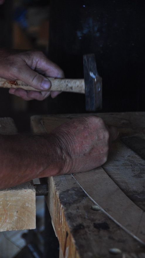 Klaus explica al fotógrafo las herramientas, los planos, todo demasiado complejo para comprenderlo a la primera. A través de la Asociación Cultural, los voluntarios pueden diseñar y construir su propio barco en el astillero bajo la tutela de Sánchez Guitard. Hay también talleres y hasta 2009 se impartió un módulo de Formación Profesional, de 720 horas. Pocas, porque el oficio sólo se aprende pasando muchas horas en lugares como este. “Primero barriendo, luego sujetando una tabla… y poco a poco te inicias en el oficio. Así lo aprendí yo”, comenta.