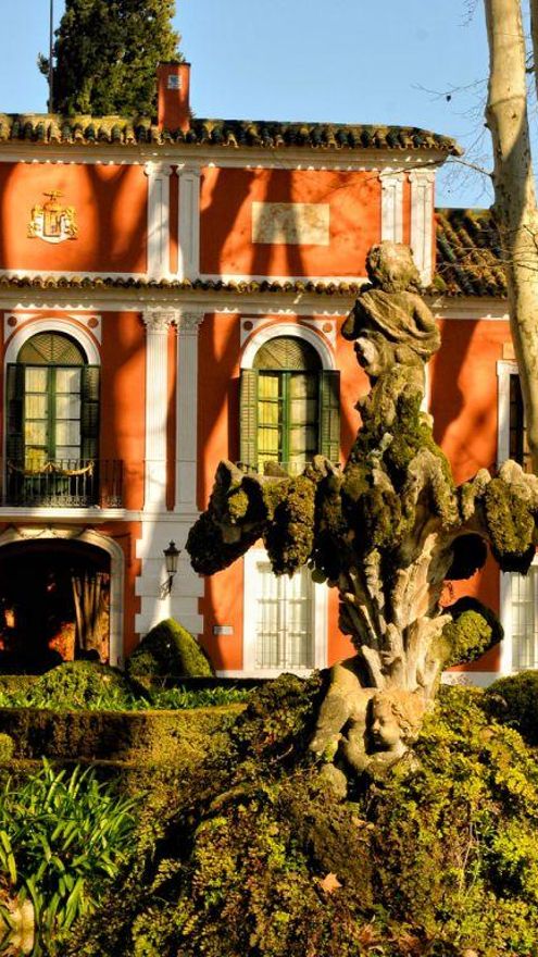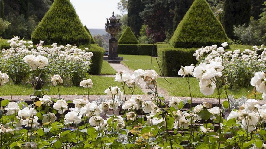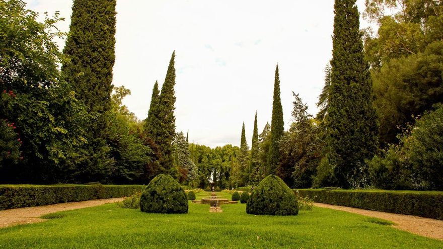 Ocho hectáreas conforman este paraje singular situado en la finca del mismo nombre, a la que se accede desde la carretera A-431, tras una imponente verja de hierro decorada con escudo y motivos de caza, que por sus dimensiones da la talla del palacio y jardines que se encuentran en su interior.
