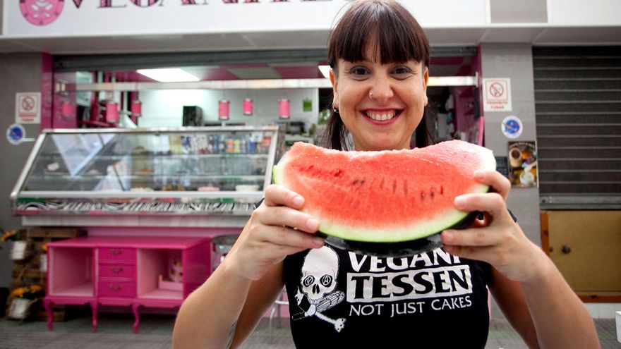Anabel relata que llevaba un tiempo dándole vueltas al tema vegano. “Lo que me decidió fue ver un cerdo abierto en canal en una matanza en mi pueblo. Ese día cambió todo”. Ahora regenta el Veganitessen, que cosecha un gran éxito desde su apertura en 2009. Tiene una repostería fantástica con todo tipo de duces, palmeras de chocolate, cupcakes y una tarta Red velvet de muerte. Para elaborar todos estos platos, los veganos encuentran todos sus ingredientes entre los vegetales: nata de soja, seitán, gluten de trigo... Con ellos preparan todo tipo de platos creativos. Pero como reza el eslogan de Veganitessen, no sólo hacen repostería y sorprenden a sus clientes con una American burguer o un filete con moho picón.