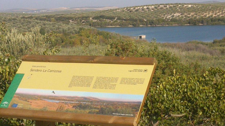 Para ello, tres senderos marcados parten desde el centro para aproximarse a la laguna: el que va hasta el Observatorio –una pequeña cabaña desde donde observar a las aves-, el que va hacia Las Fuentes de donde mana el agua subterránea que llega hasta la laguna, y el sendero de la Carrizosa, un recorrido circular por el entorno de Zóñar.