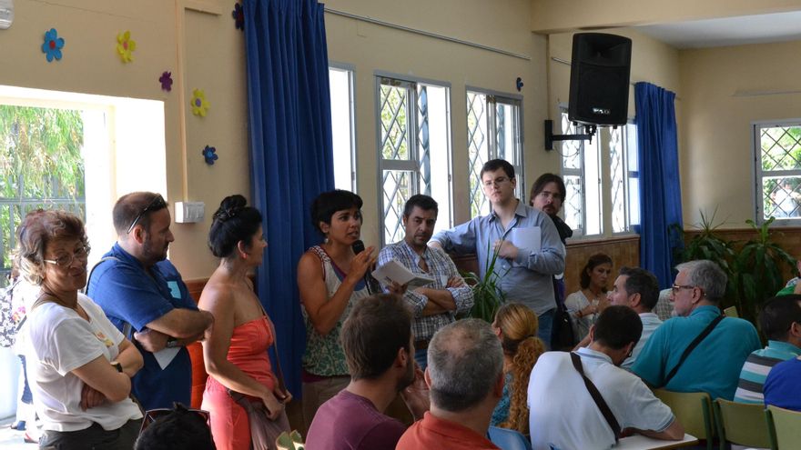 La otra pregunta sin respuesta es cómo hará política, y aquí se adivina un eje clave: la relación con Izquierda Unida. “Lo urgente es saber cuáles son nuestras líneas rojas cuando hablemos con ellos: ¿qué puntos son infranqueables?”, se preguntó un participante en la asamblea. La cuestión ocupó gran parte del debate sobre la situación de Andalucía, en el que no se ahorraron críticas al papel de la coalición de izquierdas en el gobierno andaluz. Las intervenciones no abonaron el terreno al pacto: “IU no será casta, pero sí es régimen. Willy Meyer y Diego Valderas llevan toda la vida siendo liberados políticos”; “la Junta dice que se puede hacer otra política, pero luego no presenta alternativas en las instituciones”; “¿Queremos construir una alternativa política que acabe enfrentándose a aquellos a cuyo lado deberíamos estar, como los monitores?”; “Aquí no se privatiza, pero sí se externaliza”. Los participantes fueron especialmente críticos con la gestión “electoralista” de la crisis generada por el desalojo de la corrala La Utopía y acusaron a IU de proveer una solución “asistencial”. “Antes IU nos insultaba. Ahora quieren confluir, y eso es asimilar. El programa podrá ser el mismo, pero el método no tiene nada que ver”, advirtió otro, entre críticas a los recortes y a “esa forma de gobernar, venga de donde venga”. Estas opiniones sirven para palpar por dónde respira una organización sin otra estructura de base que los círculos que ayer se reunieron en Málaga.