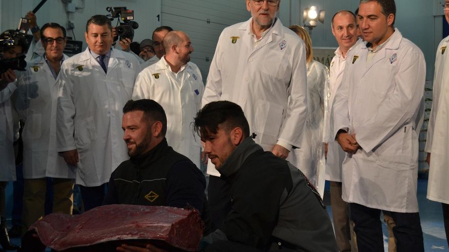 Rajoy hizo estas declaraciones poco después de contemplar cómo unos profesionales del asunto desmembraban un enorme atún de 180 kilogramos de peso. El ronqueo del atún, se llama la técnica. Rajoy tocó con un dedo (uno solo) el lomo del pescado, hizo alguna observación y alguien le hizo notar que habría quien quisiera verlo así, como un atún. “Pues no podré darles el gusto, qué le vamos a hacer”, respondió el presidente. Poco después, alguien de su equipo relataba la siguiente anécdota de Rajoy y tres pargos: “Le han preguntado si le recuerdan a alguien y él ha dicho que a tres personas, pero que no iba a entrar en detalles”.